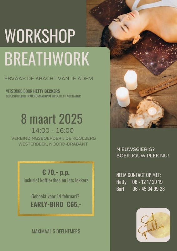 Deze workshop wordt gegeven door Hetty Beckers, gecertificeerd transformational breath facilitator.