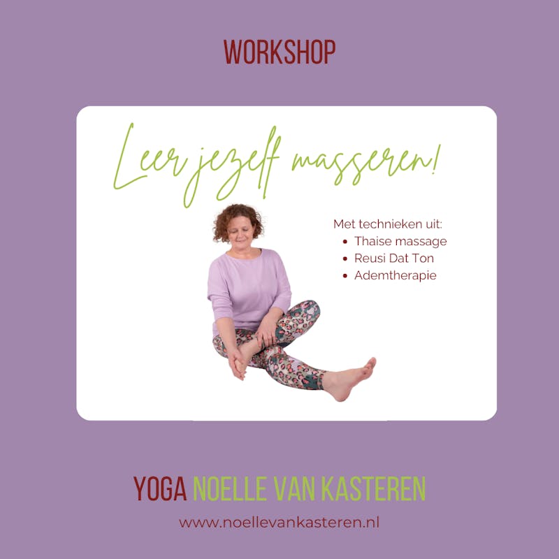 Tijdens deze workshop leer je hoe je door verschillende manieren van masseren met jezelf in contact kan komen. Technieken uit de Thaise massage, Reusi Dat Ton en yoga-ademhaling helpen daarbij. Een heerlijke middag voor jezelf!Β