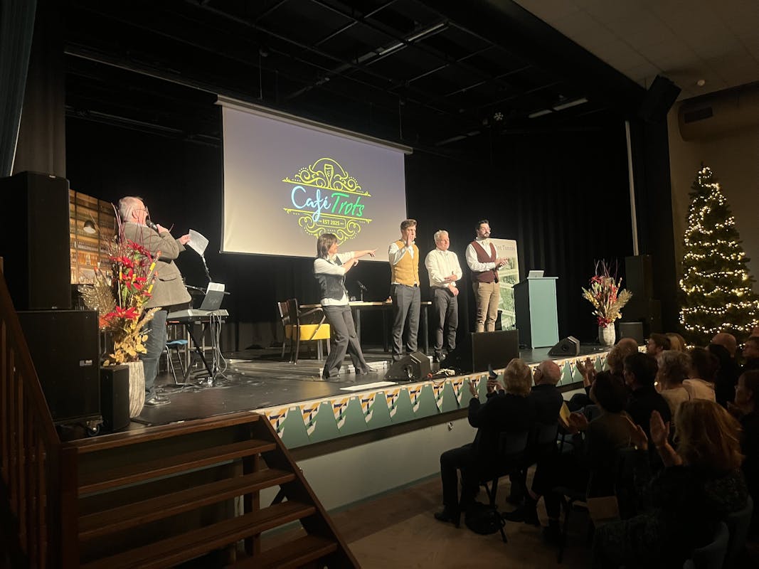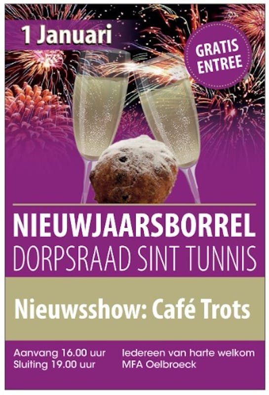 Nieuwjaarsborrel van de dorpsraad Sint Tunnis met nieuwsshow: café trots.