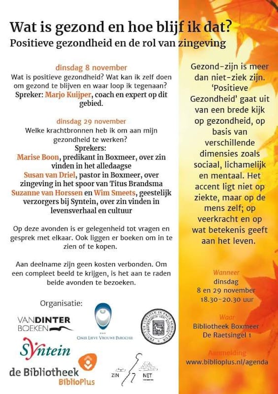 Kom luisteren naar verschillende sprekers die vertellen over positieve gezondheid en de rol van zingeving.