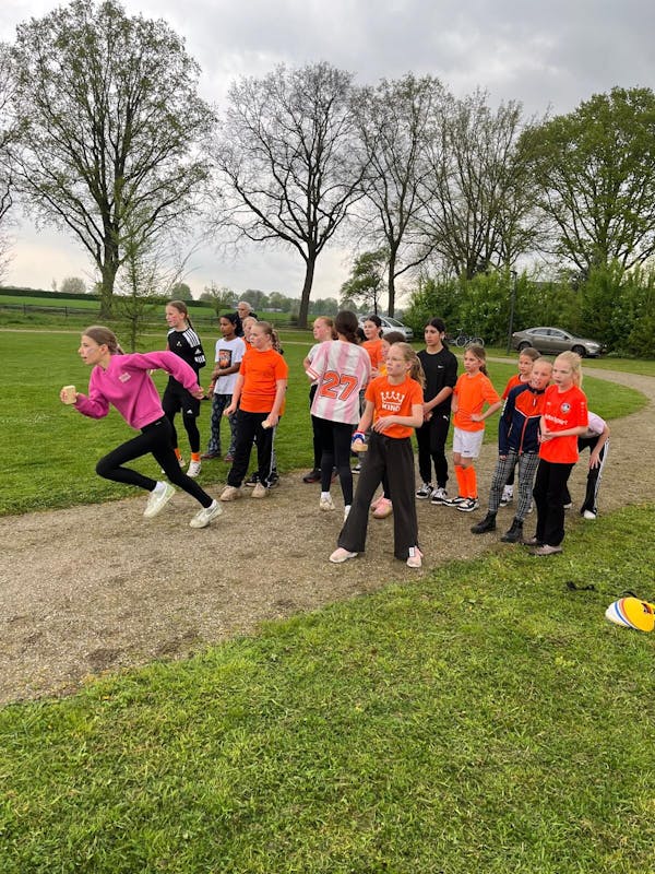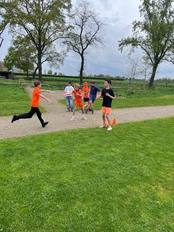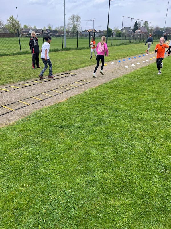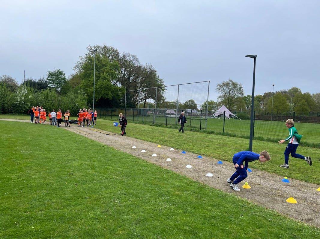 We lieten de leerlingen kennismaken met loopactiviteiten met de loopladder en verschillende estafettevormen en zij waren allemaal zeer enthousiast. Bijzonder was dat alle groepen vroegen of ze ook de hele baan rond mochten rennen. Dus van de slotestafette werd zeer genoten.