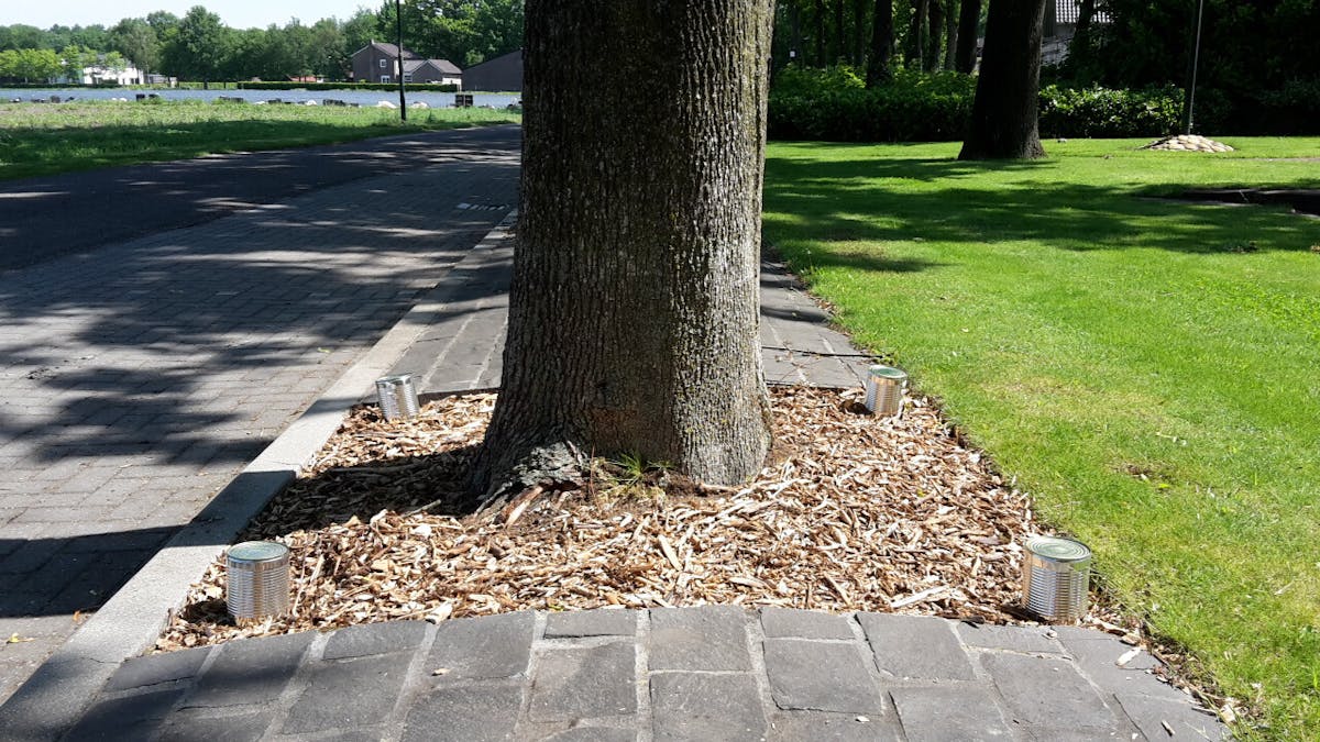 Betreffende bomen kregen te weinig water. Op advies van de bomendokter heeft Piet van de Rijt gaten in de grond geboord zodat hij het water direct naar de wortels kan brengen.