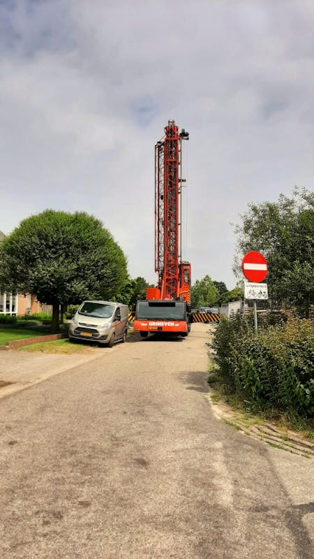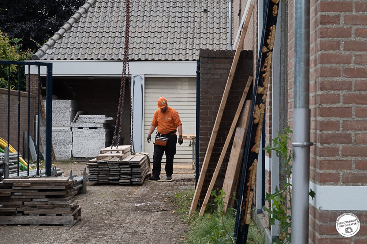 Woensdag jl. werd er een torenkraan in stelling gebracht om spullen te verzetten en/of op te ruimen.
