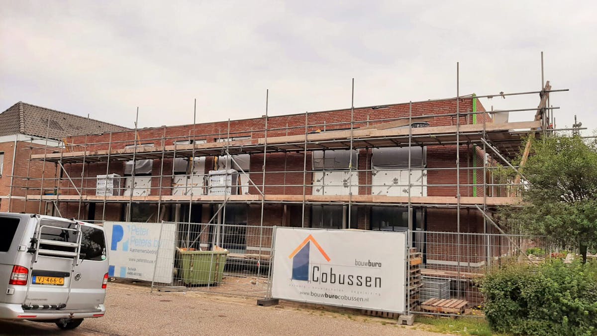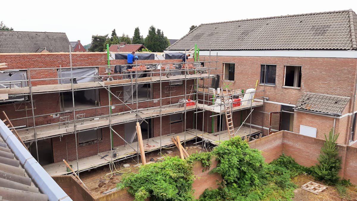 Het gaat als een speer de muren zijn zover opgetrokken zodat in week 26 aan het platte dak begonnen kan worden.