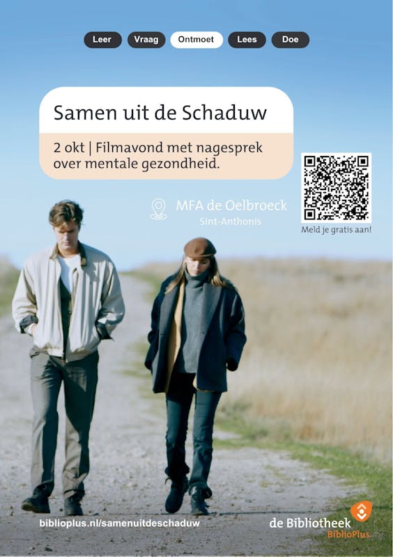 Op woensdag 2 oktober 2024 organiseren diverse samenwerkingspartners in het Land van Cuijk in mfa Oelbroeck een gratis filmavond met de documentaire Samen uit de Schaduw van Hannah Verboom. Deze avond is een initiatief om mentale gezondheid onder de aandacht te brengen. De bijeenkomst is gratis toegankelijk.