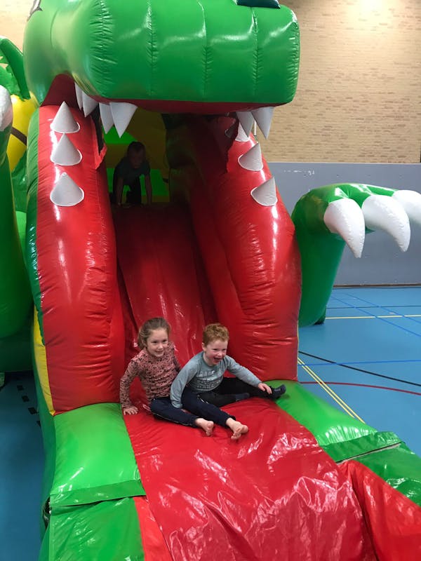 In groten getale kwamen de kinderen een dagje doorbrengen bij het Crazy Springparadijs en gingen met veel enthousiasme de verschillende toestellen af. Terwijl de kinderen de dag doorbrachten in de sporthal en genoten van lekkers van de braskaart of een broodje knakworst, konden de ouders en begeleiders in de ruimte voor de sporthal en in de Ontmoeting van Oelbroeck genieten van koffie met lekkers of heerlijke broodjes. Al met al voor iedereen een mooi dagje uit.