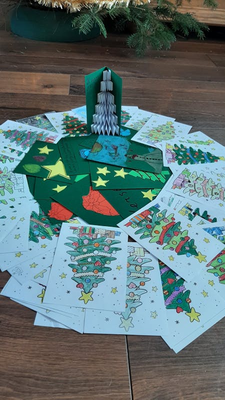 En laten we vooral de leerlingen van groepen 5 en 6 van basisschool Leander niet vergeten. Ze hebben prachtige kerstkaarten gemaakt die de pakketten nog specialer maakten.
