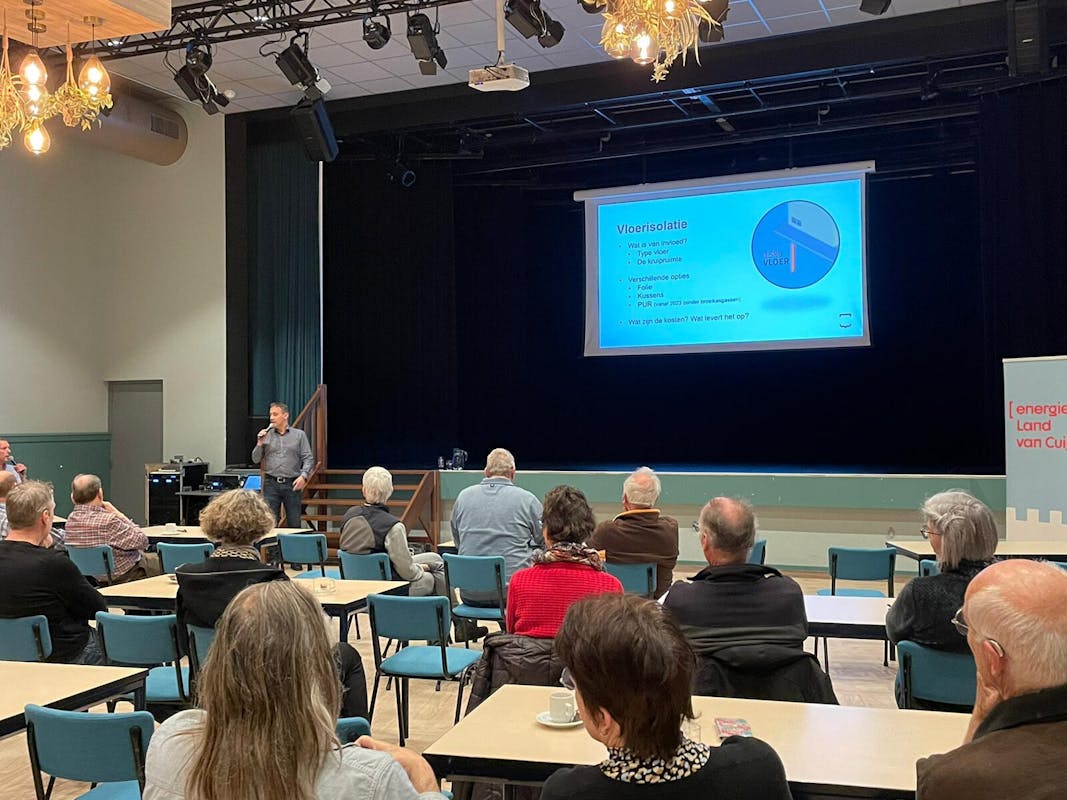 Thema’s zoals isolatie, (hybride)warmtepompen, zonnepanelen, aardgasvrij wonen, zonneboilers werden behandeld. Ook de onderwerpen subsidies en leningen kwamen aan bod.