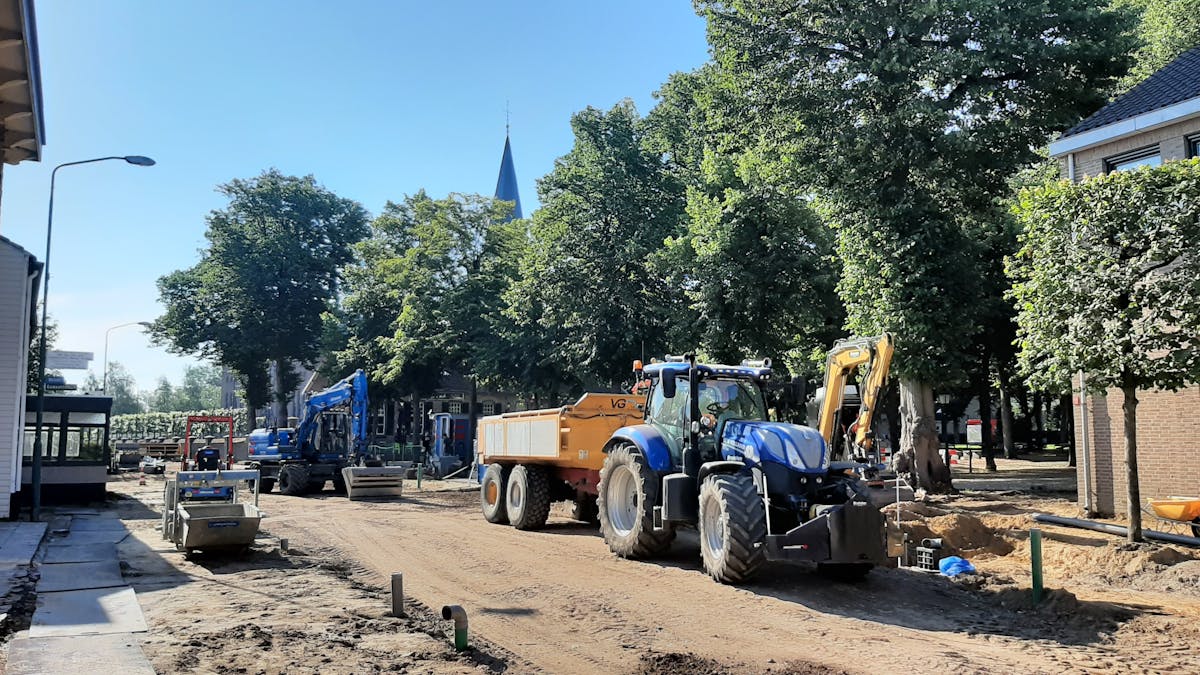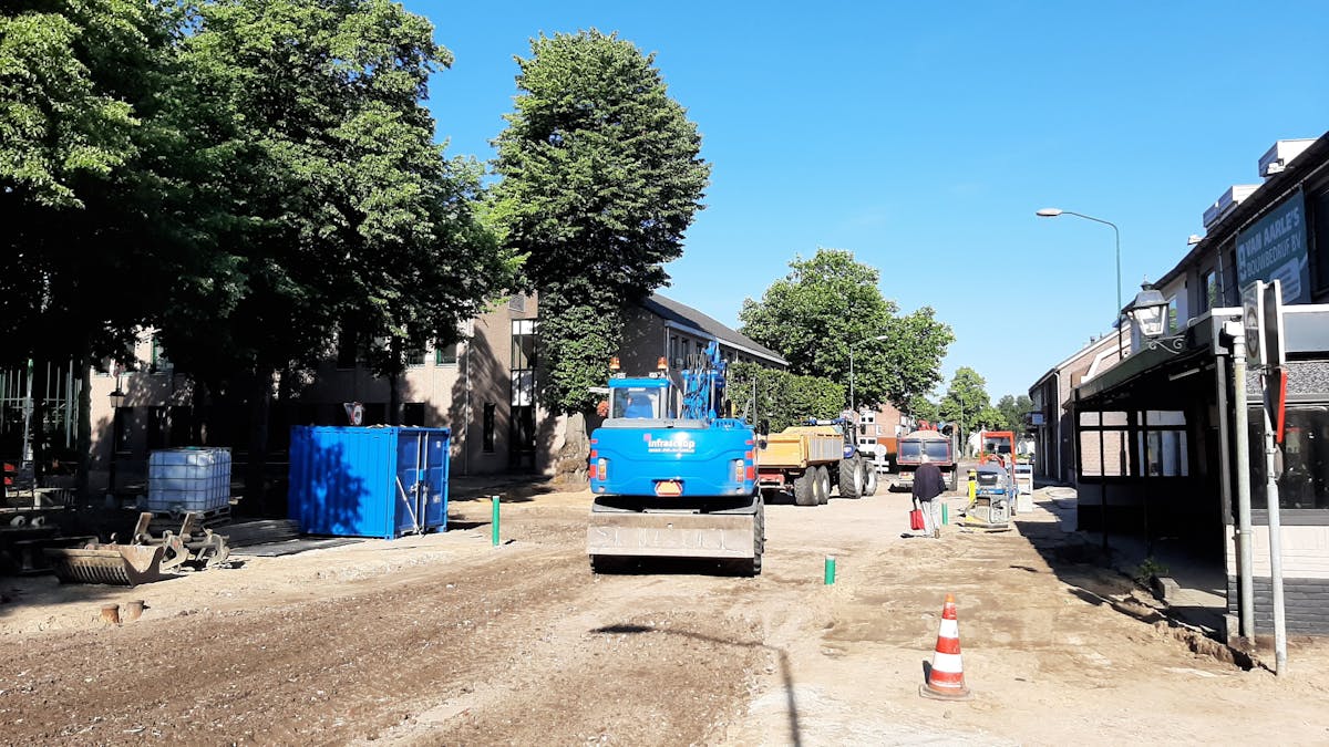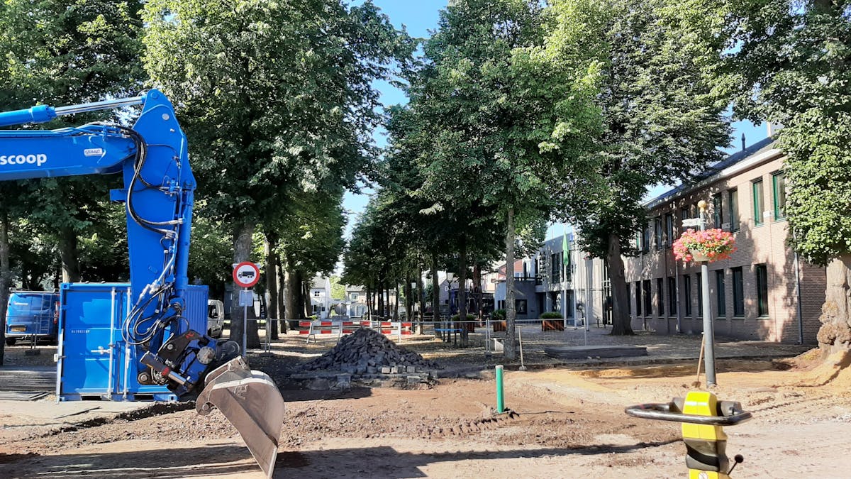Met man en macht wordt er gewerkt! Er is een start gemaakt met de oude klinkers.