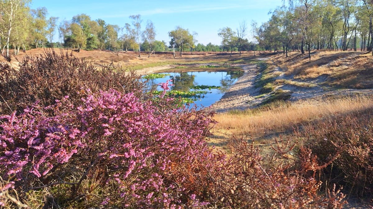 De foto van de maand is gemaakt door Gerhard Markerink. “Op 28 september stond de heide nog volop in bloei. De foto is genomen tijdens een wandeling in de Staatsbossen, bij de drinkplaats van de koeien,” vertelt Gerhard.