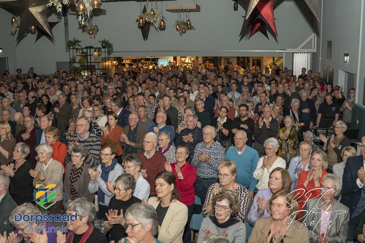 De nieuwjaarsreceptie van de dorpsraad in Sint Tunnis trok veel belangstellenden, inclusief enthousiaste jongeren. Het was een gezellige bijeenkomst, met een schitterend optreden van cabaretgroep "Iets van Niks". Helaas, het laatste optreden.