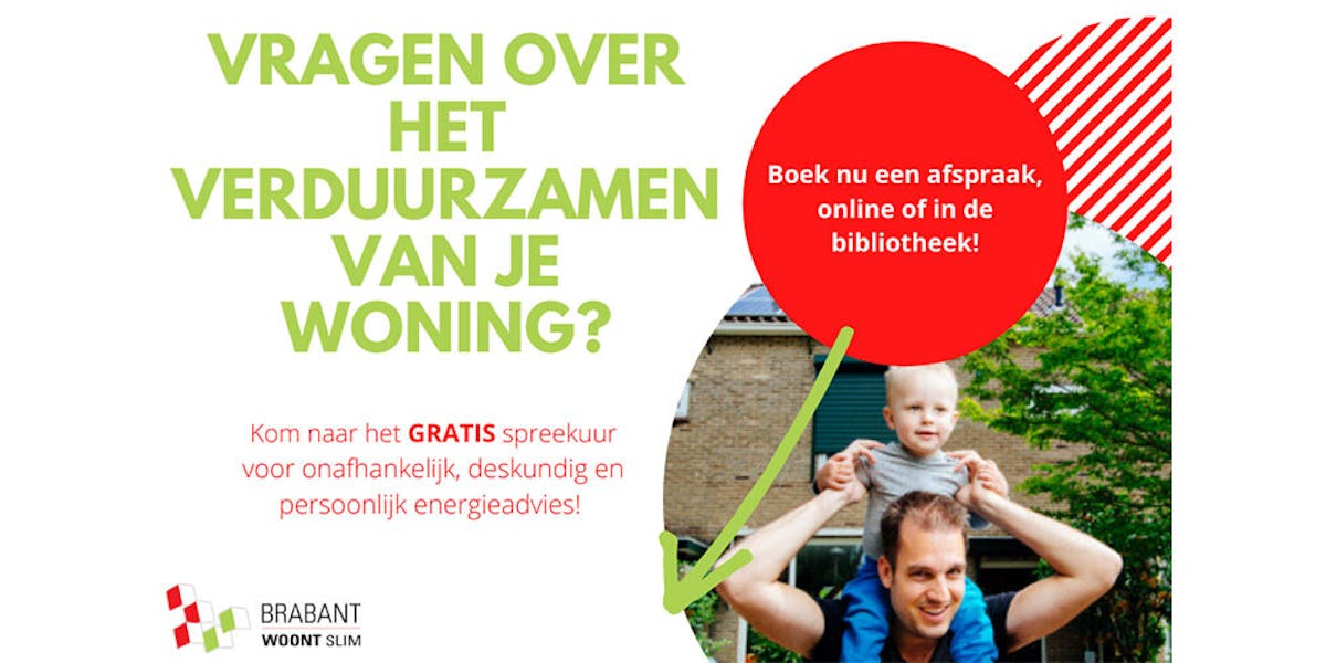 Lage energiekosten, stroom besparen, een goed geïsoleerde woning dat willen we allemaal. Zeker nu met de gestegen energiekosten. Heb je daar vragen over? Stel ze aan een ervaren adviseur van Brabant Woont Slim. Dat kan tijdens de energiespreekuren in één van de deelnemende bibliotheken in het Land van Cuijk of via een online gesprek. Het gesprek met deze onafhankelijke energieadviseur duurt maximaal 30 minuten en is bovendien geheel gratis.