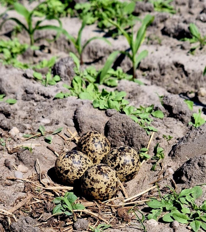 Onvoorstelbaar dat er zoveel kievitslegsels zijn uitgekomen. In totaal 9 nesten gevonden en 7 daarvan zijn uitgekomen. Dit is te controleren door een leeg nest te onderzoeken. Wanneer een kievitsjong uitkomt verstopt de kievit de kapotte eierschalen onder in het nest. Dit om predatoren niet te lokken. 1 nest is verlaten en 1 nest was leeg zonder verstopte eierschaal dus geroofd. Ook heb ik diverse kievitsjongen (pullen) zien lopen en geprobeerd deze te benaderen maar helaas. De jonge pul weet zich vanwege zijn schutkleur goed te verbergen en drukt zich tegen de grond. Onvindbaar dus!.