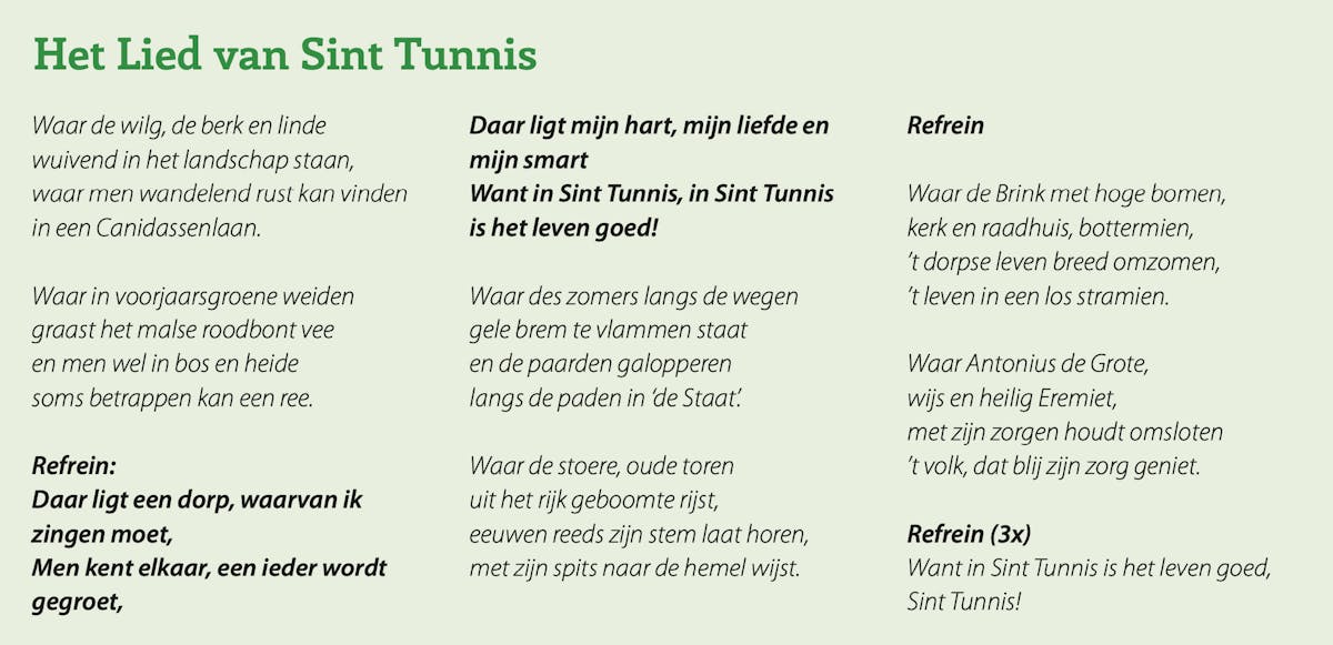 In gesprek met Marc Thijssen en Christan van Gelder valt direct op hoeveel werk er gezeten heeft in het realiseren van de eigentijdse versie van het originele Lied van Sint Tunnis van Jo de Jong. Een flinke dosis enthousiasme en een groot aantal uitvoerende muzikanten stonden garant voor een prachtig eindproduct.
