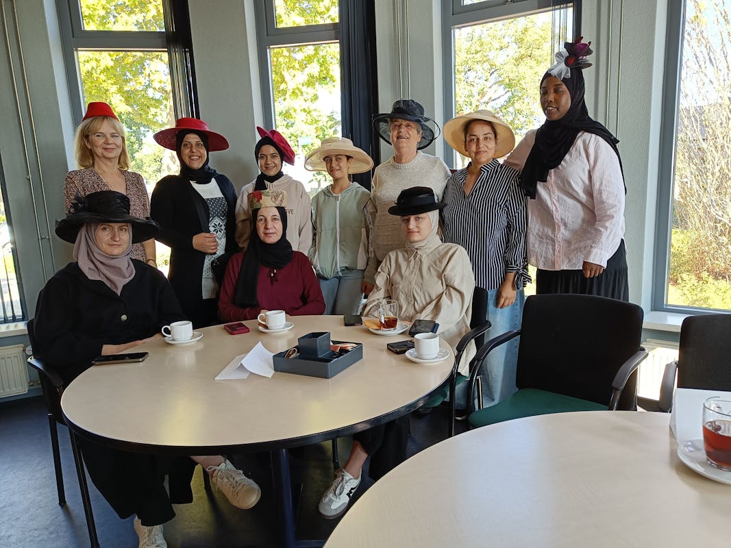 In navolging van ministers en staatssecretarissen die op Prinsjesdag getooid met de meest uiteenlopende hoofddeksels de Koninklijke Schouwburg in Den Haag betraden besloten de gasten van Vrouwen voor Elkaar tijdens hun bijeenkomst vrijdag 19 september jl. ook de hoed op te zetten.