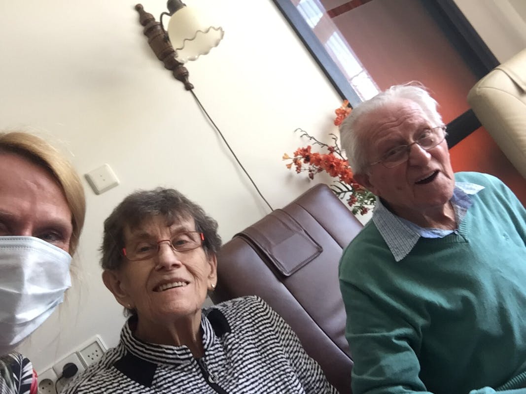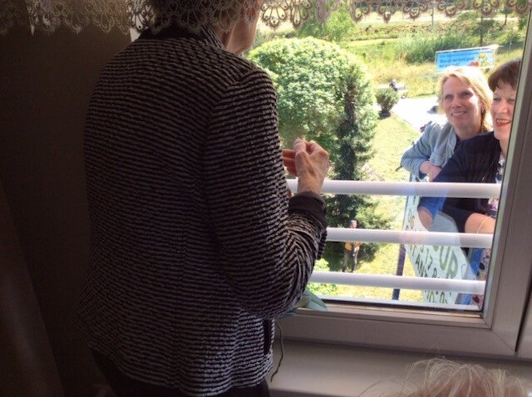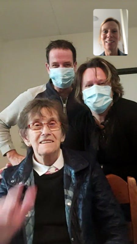 We zijn heel dankbaar dat er nog bezoekregelingen zijn en dat we moeder kunnen bezoeken en dat de verzorging echt ontzettend goed en heel lief voor haar is.
