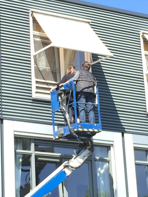 En om alles wat draaglijker te maken mochten we na een tijdje in de hoogwerker van Grad Jansen. Zeer gewaardeerd!! Het was zo fijn om toch even wat dichterbij te zijn ook al zat het raam er nog tussen.