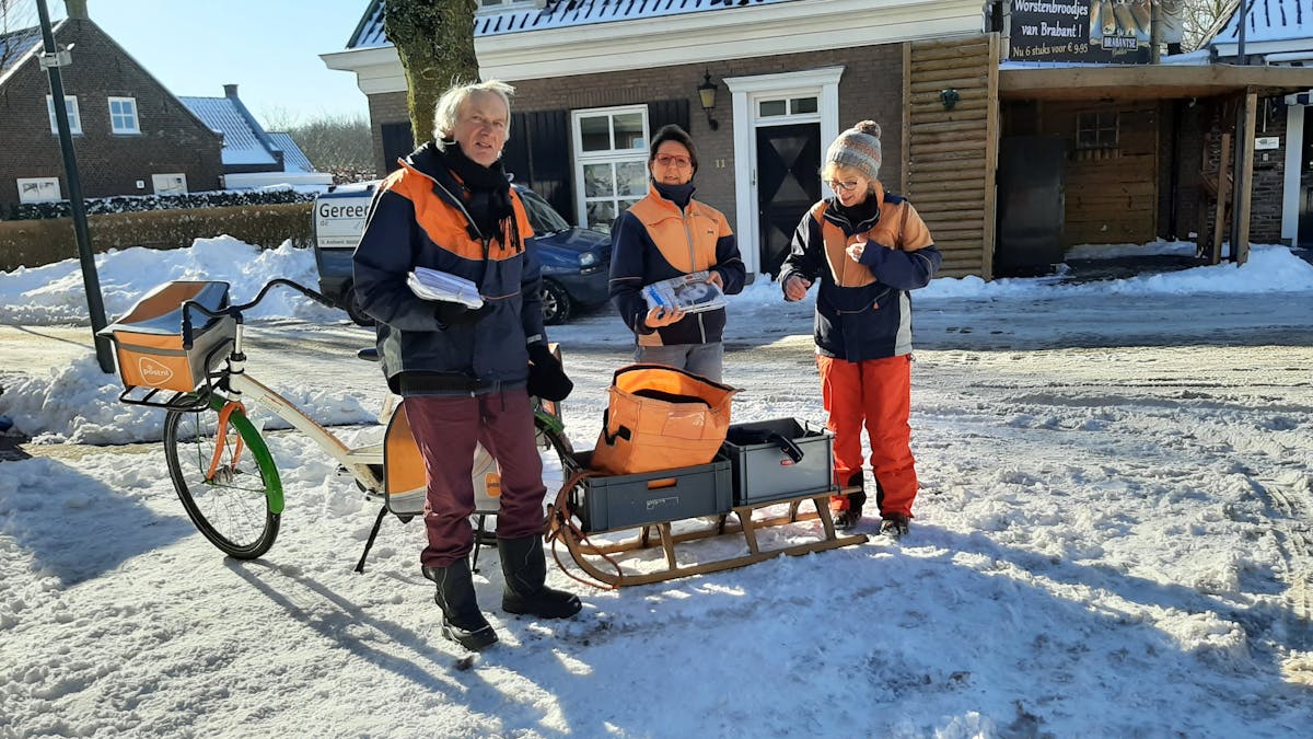 - Een toevallige ontmoeting met 3 van onze postbodes bij de Dorps shop in Sint Anthonis. Op de fiets met een slee erachter brengen ze de post rond. " We moeten vaak lopen met de fiets aan de hand en zijn minimaal 2 uur langer bezig per dag. We moeten meerdere keren de post hier ophalen" Staan we daar bij stil als we de post uit de brievenbus pakken?