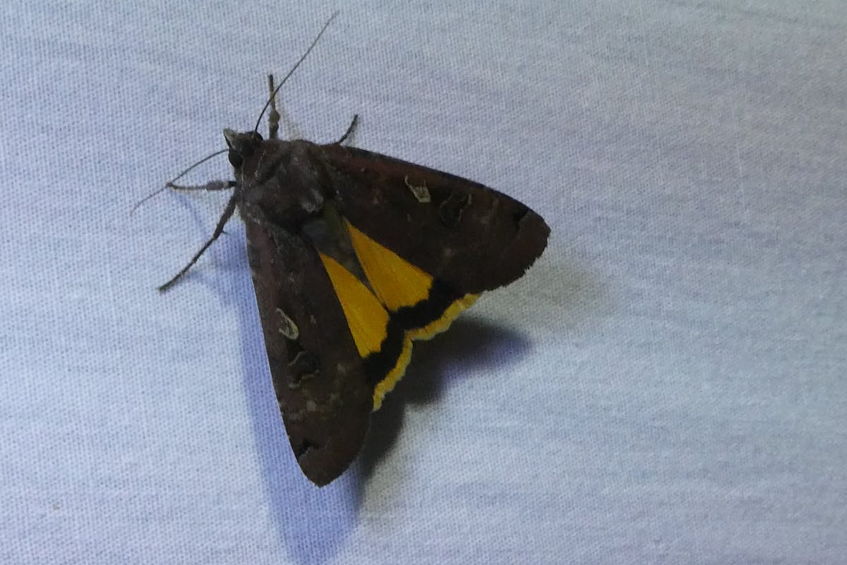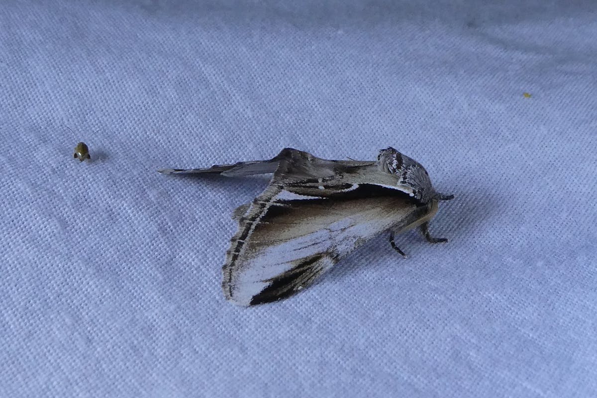 Het was al een tijdje na middernacht, toen de lamp uitging (helaas had een lamp al eerder de geest gegeven). Bijna 70 soorten konden we op het namenlijstje noteren. Daarnaast zagen we nog een aantal andere insecten zoals schietmotten, sluipwespen, langpootmuggen, goudoogjes, veldsprinkhaantjes en zelfs zweefvliegen.
