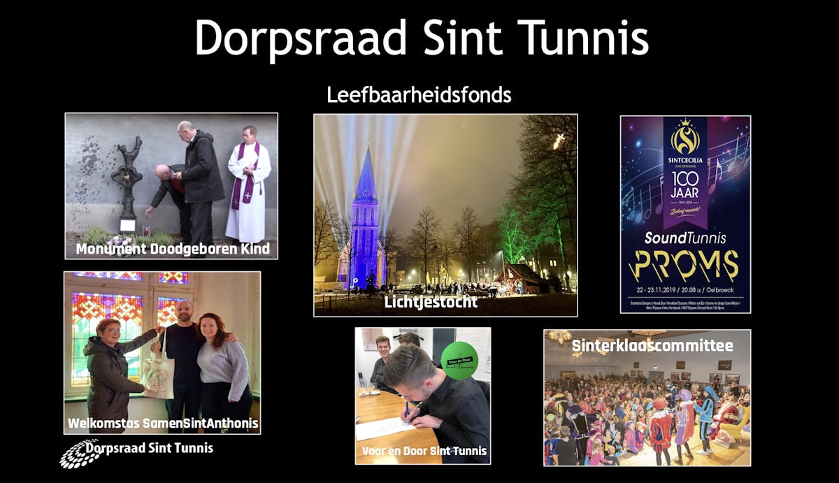 Al ooit gebroed op een nieuw initiatief voor Sint Tunnis? Het leefbaarheidsfonds kan je misschien op weg helpen. Ieder jaar krijgt Dorpsraad Sint Tunnis een subsidie van de gemeente Land van Cuijk om de leefbaarheid in de kernen te stimuleren. De dorpsraad gebruikt deze subsidie om nieuwe initiatieven vanuit het dorp te ondersteunen. Zo zijn in de afgelopen jaren al vele nieuwe projecten geholpen bij de opstart, waardoor er mooie jaarlijks terugkerende evenementen zijn ontstaan. Heb je een idee voor een nieuw project dat de leefbaarheid binnen het dorp bevordert, kijk dan naar de voorwaarden en het aanvraagformulier op www.dorpsraadsinttunnis.nl. Onder het kopje ‘commissies’ staat meer informatie over het leefbaarheidsfonds.