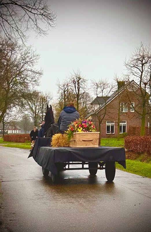't Stamhuus aan de Noordkant met de platte kar vertrokken richting het crematorium. Buurtgenoten vormden een erehaag. Een inwoner stuurde een indrukwekkende afbeelding.