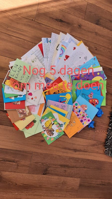 Kinderen van klein tot groot hebben mooie tekeningen gemaakt, we hebben kaarten gekregen die inwoners geschreven hebben. Enkele kinderen van groep 7 of 8 hebben de mooie gedichten op kaart gezet! Creatief zijn de kinderen aan het plakken gegaan, maar niet iedereen is creatief. Koop dan een kaart, schrijf er iets op! Afgeven kan in de doos Jan Linders aan de linker kant bij binnenkomst!