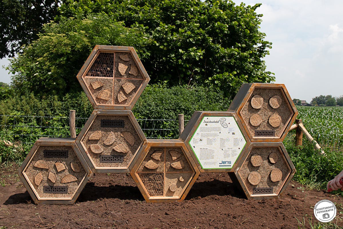 Ook is er een bijenhotel geplaatst. Het bijenhotel is geplaatst en vervaardigd door Bijenhotel te Overloon. Bianca Pouw vertelt de aanwezigen over de totstandkoming van een bijenhotel en waarom deze zo belangrijk zijn voor de natuur.