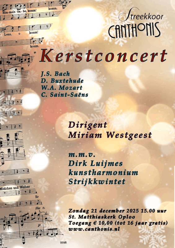 Op zondag 21 december vindt om 15.00 uur het traditionele kerstconcert plaats van Streekkoor Canthonis, in de Matthiaskerk in Oploo.