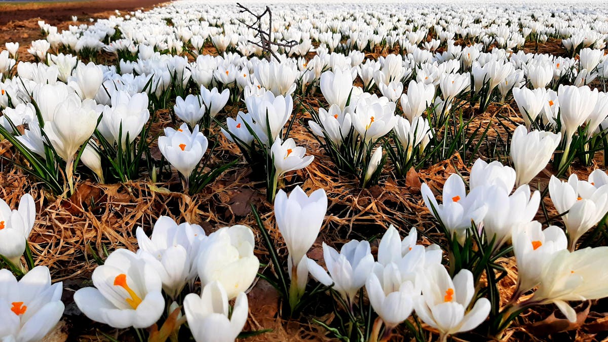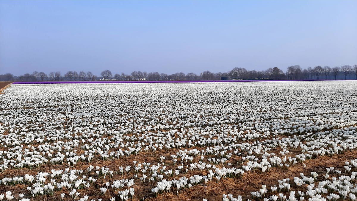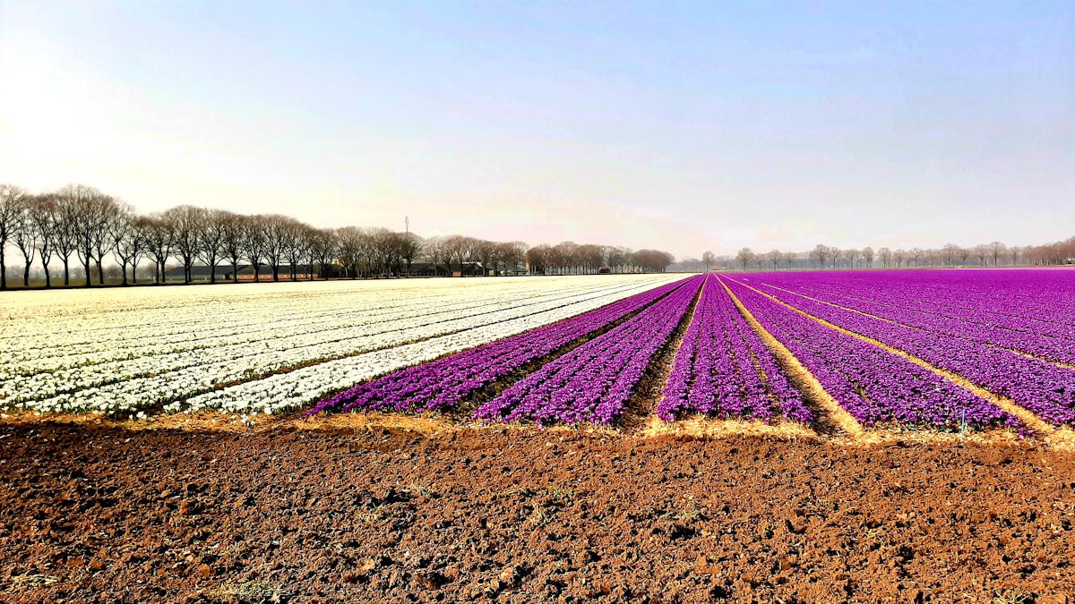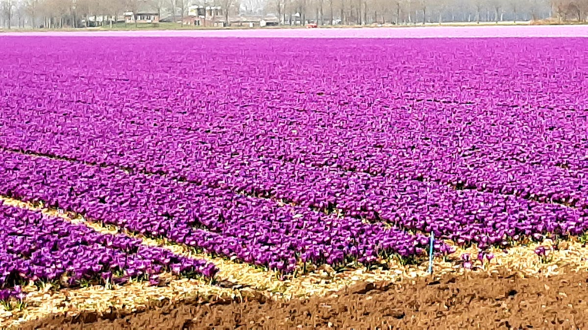 Tijdens onze fietstocht kwamen we door Landhorst en zagen vanuit de verte de prachtige kleurrijke bloembollenvelden.