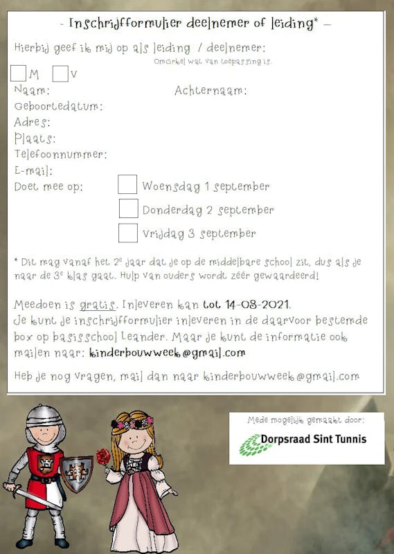 Wat een prachtig initiatief. De kinderbouwweek komt weer terug in Sint Tunnis. Voor wie: basisschool leeftijd kinderen in Ledeaker en Sint Tunnis.