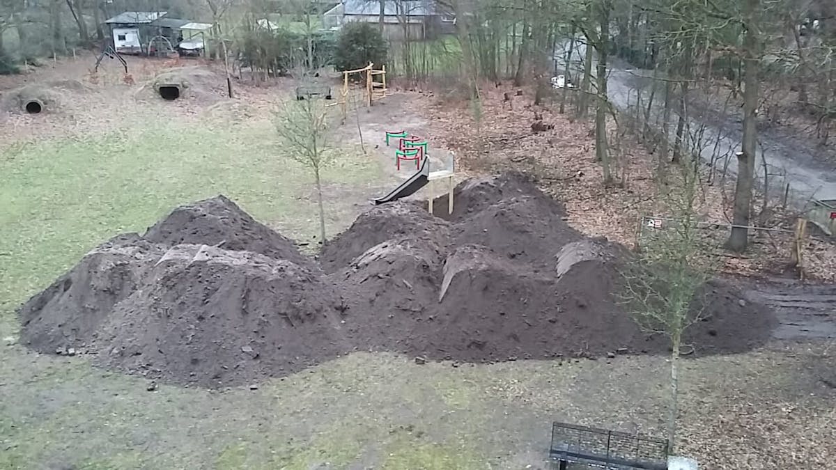 Het natuurlijk speelterrein is nog volop in ontwikkeling, en dit zand is nodig voor het vervolg.