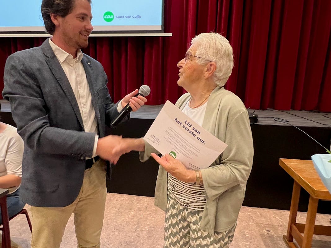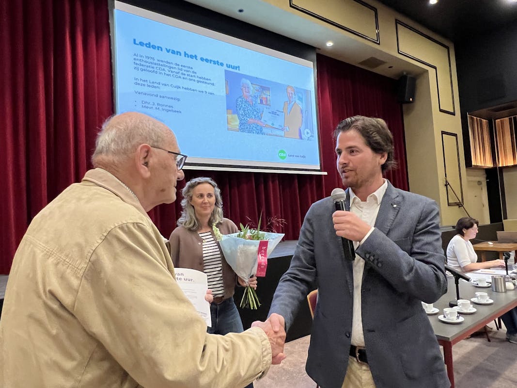 Tijdens onze ledenvergadering vorige week vrijdag, was er een speciaal moment voor onze leden van het eerste uur! 50 jaar lid en steun voor onze partij werd enorm gewaardeerd. Zij ontvingen een certificaat: persoonlijk ondertekend door onze landelijke partijvoorzitter Jean Wiertz en onze landelijke lijsttrekker Henri Bontenbal. En natuurlijk hoorde daar ook een prachtige bos bloemen bij!