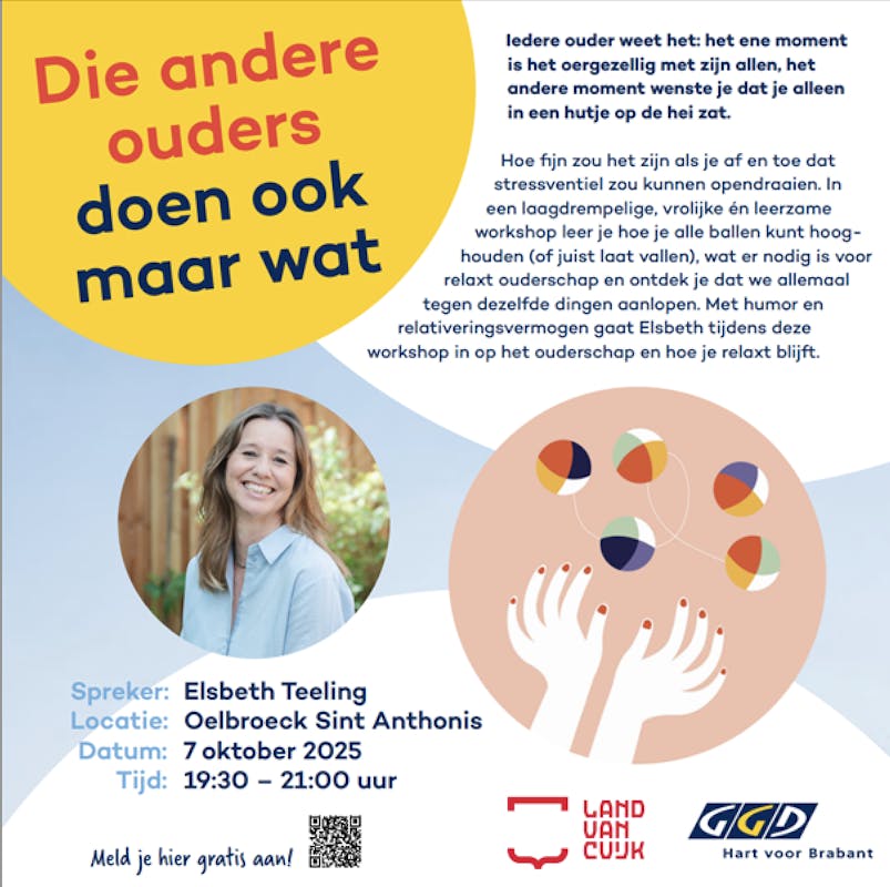Workshop “Die andere ouders doen ook maar wat’’ wordt georganiseerd door GGD Hart voor Brabant.