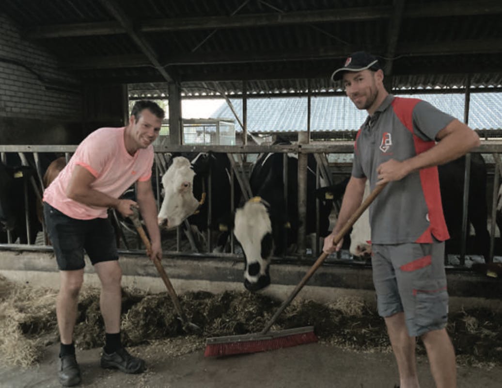 Frank en Mark lopen nog even rond de boerderij. Ze hopen dit jaar nog duidelijk te hebben hoe ze in het bedrijf aan de slag gaan. “Het idee is om eerst een paar jaar samen met pap en mam dat te doen en het daarna met z’n tweeën over te nemen. Al is het instapmoment nog niet bepaald, we hebben er nu al zin in.”