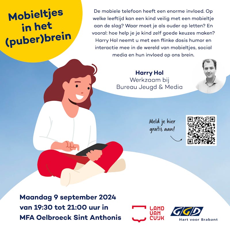 Benieuwd welke invloed mobieltjes en social media hebben op het (Puber) brein. Kom dan naar de lezing van Harry Hol op 9 september in Oelbroeck. Zie voor verdere informatie de flyer.