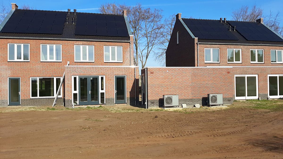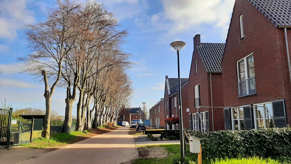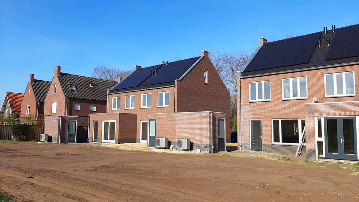Mooi om te zien dat de huizen aan elkaar aangepast zijn. Allemaal om de voordeur een wit geverfde omlijsting. Alle 6 de woningen zijn voorzien van zonnepanelen.