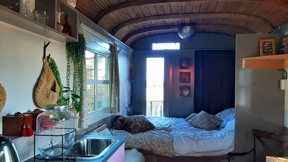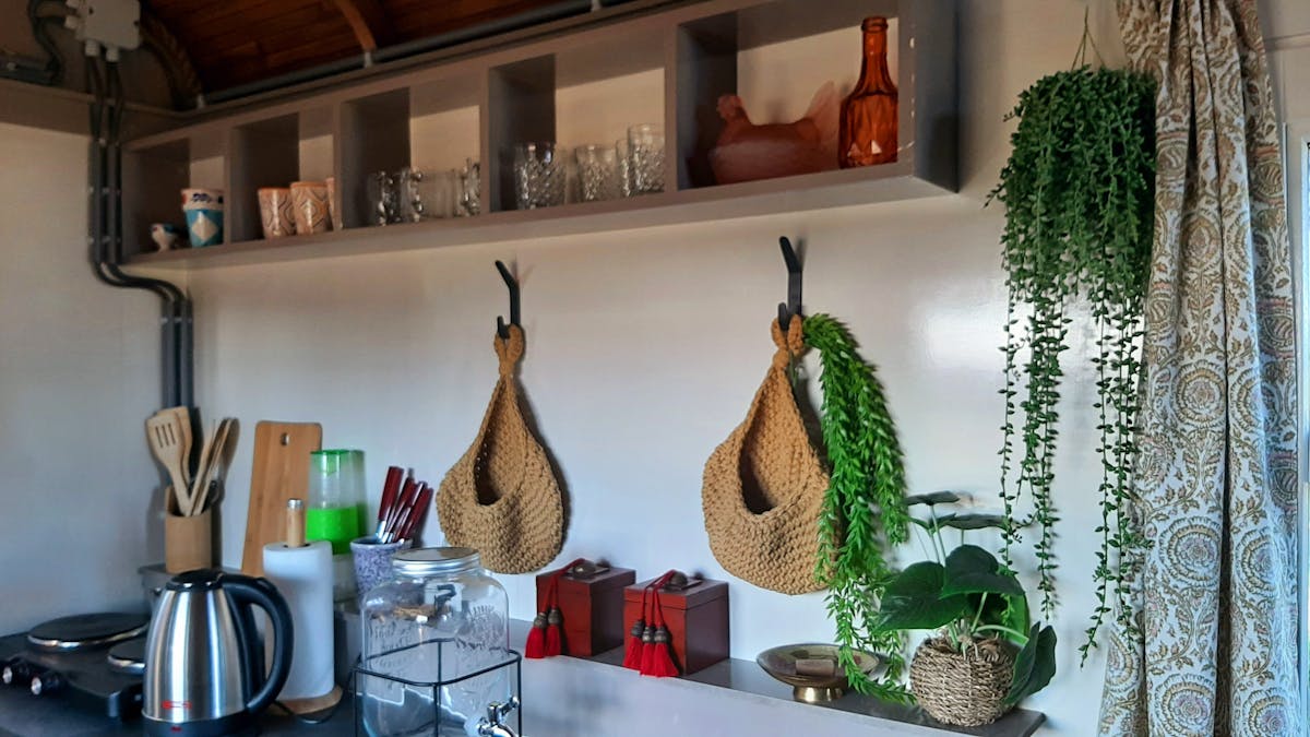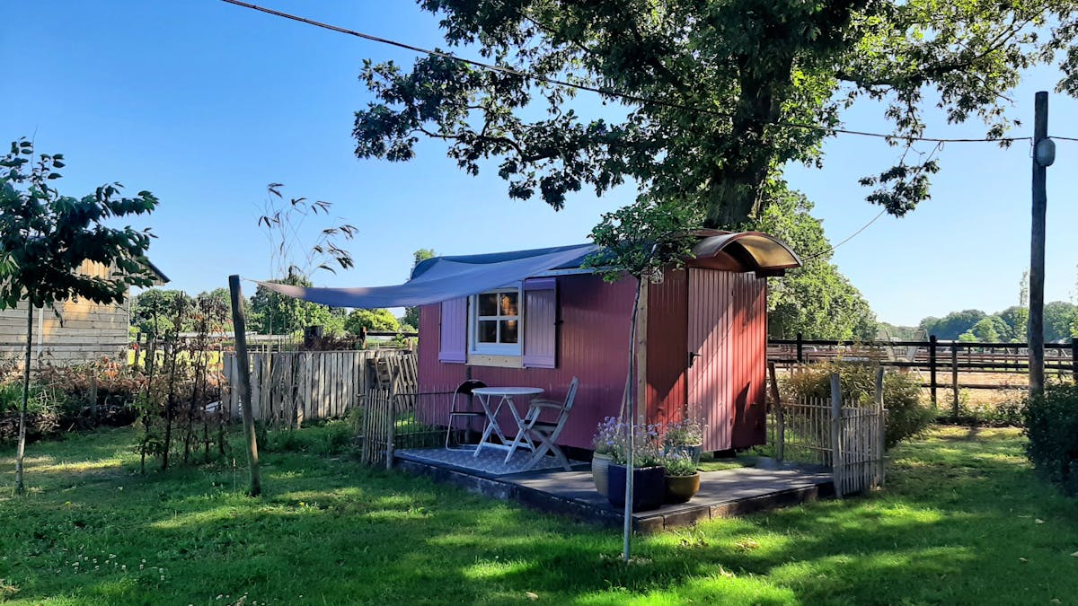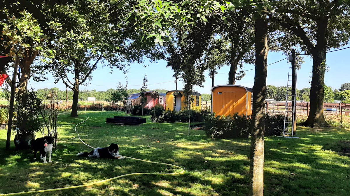 De 3 pipowagens, zijn sfeervol ingericht, waar je een eitje kan bakken, koffie en thee kan zetten.