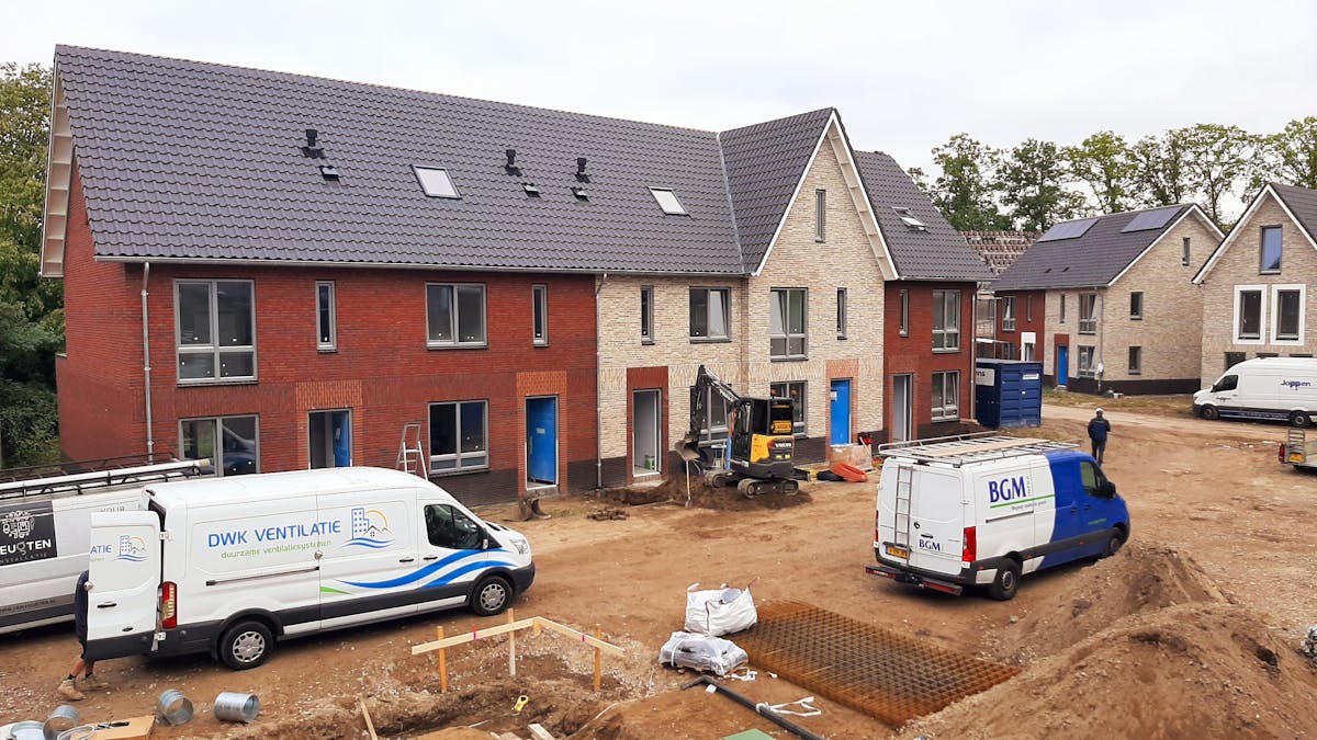 De voortgang op de bouwplaats is goed zichtbaar, de daken liggen er overal op. de tweede kijkmomenten voor de ruimere rijwoningen komen eraan, lezen wij in het artikel: wonen in de RemmensBerg op facebook 18 09 2025.(Bron)