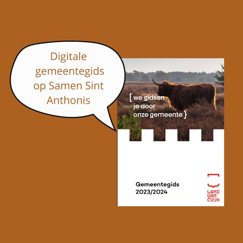 Op de website Samen Sint Anthonis is het nu mogelijk om de digitale gemeentegids van het Land van Cuijk te gebruiken, "We gidsen je door onze gemeente," op elk moment van de dag te raadplegen. Ga naar de voorpagina, scroll naar beneden en klik op "gemeente gids Land van Cuijk 2023/2024." Hiermee heb je toegang tot handige informatie, alles op één plek. Klik op de blauwe link om deze te openen.