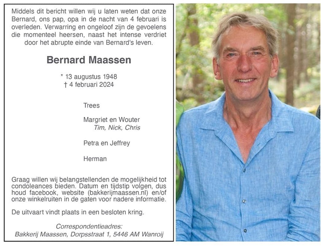 Wij zijn deze week tot 15 uur geopend in verband met het overlijden van Bernard Maassen.