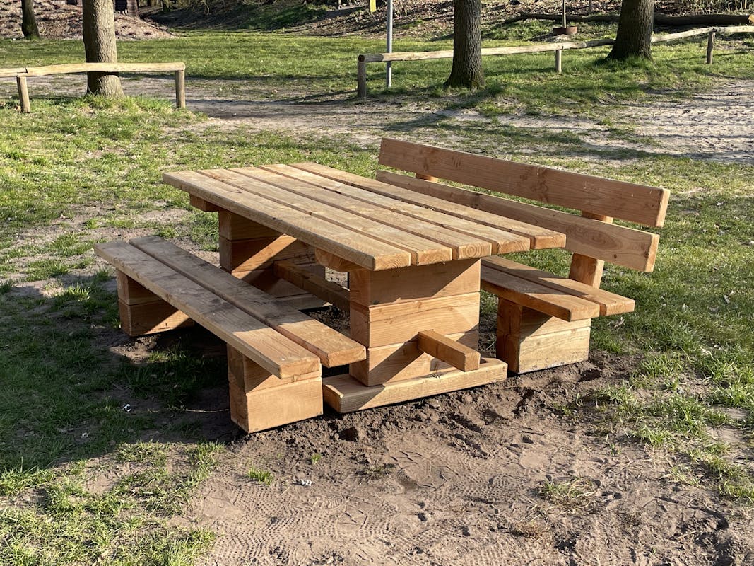 Met financiële hulp van de voormalige gemeente Sint Anthonis, Dorpsraadsinttunnis, en met de inzet van onze vrijwilligers en Carlo van houthandel Ledeacker zijn er 2 fraaie picknickplaatsen in ons mooi openbaar natuurlijk speelterrein gerealiseerd