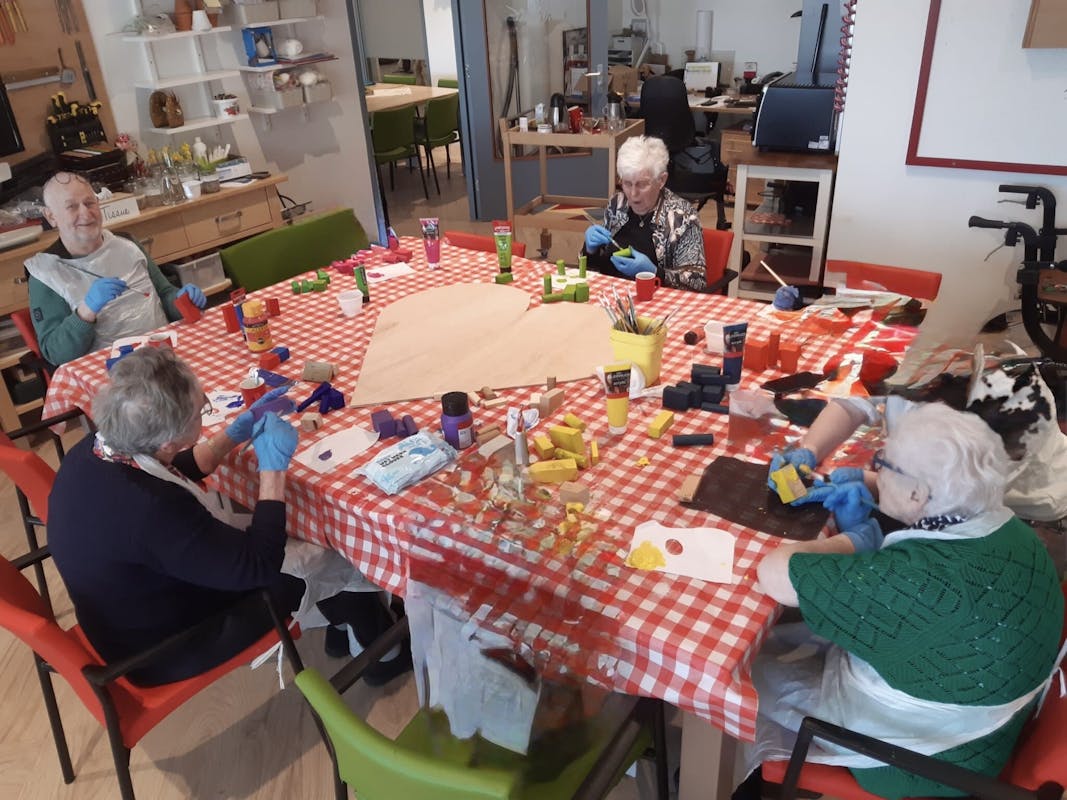 Onze gasten hebben de afgelopen maanden gewerkt aan kleurrijke, fantasierijke kunstwerken, die laten zien hoe zij De Huuskamer beleven. Jong en oud werkten samen, met mooie resultaten.