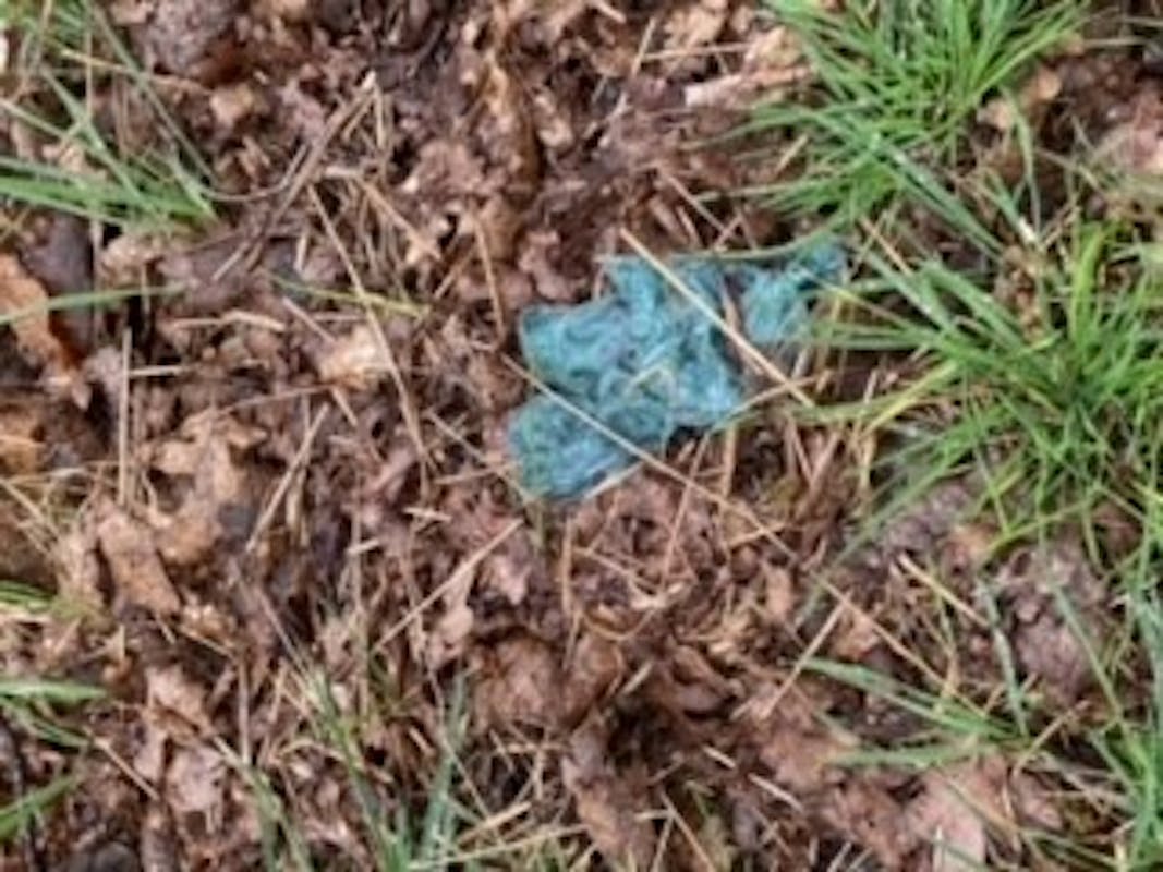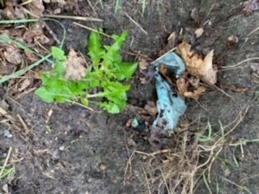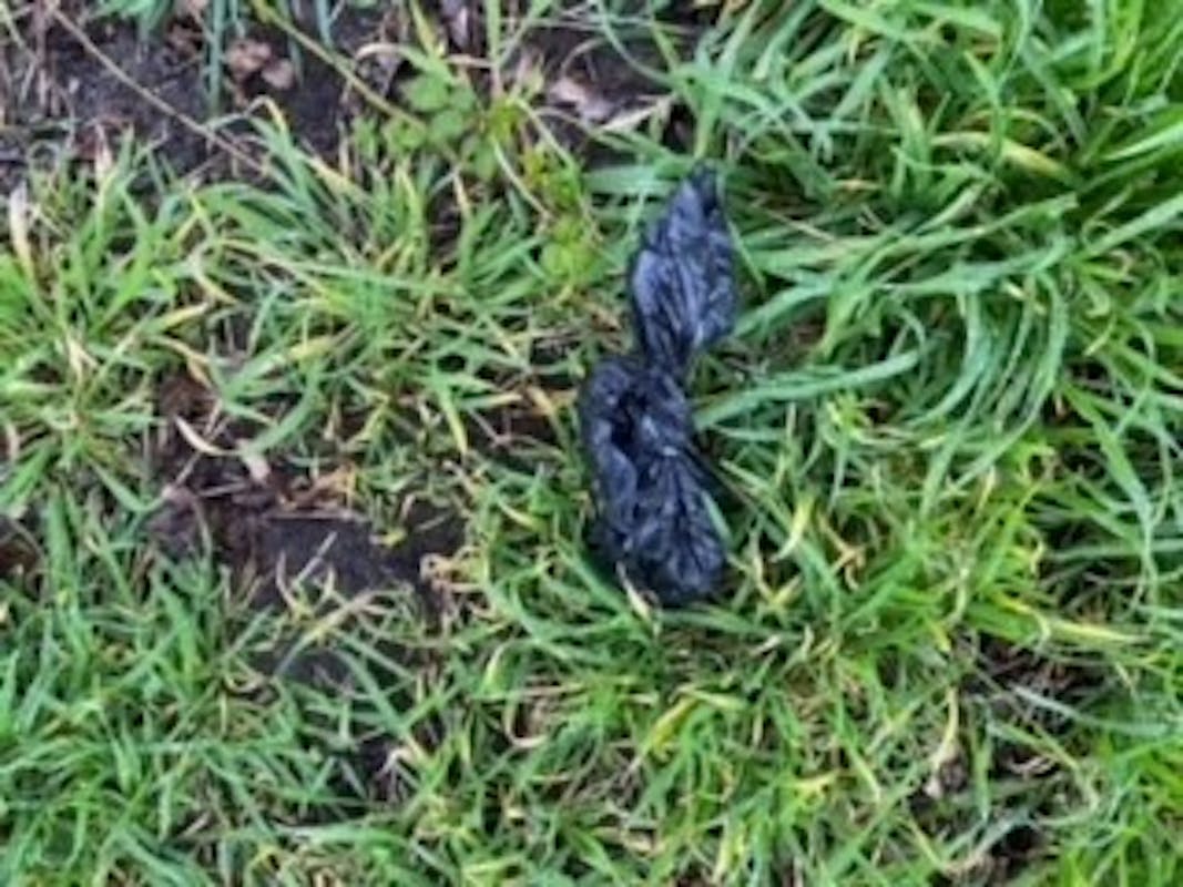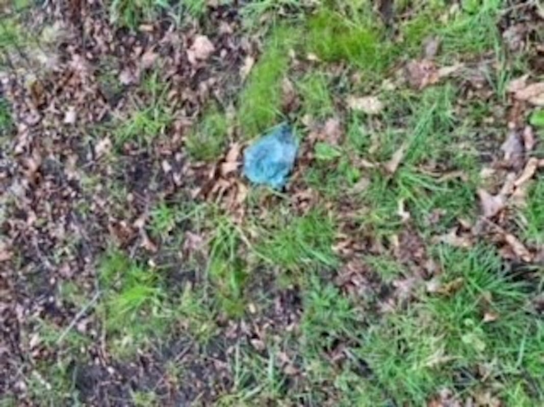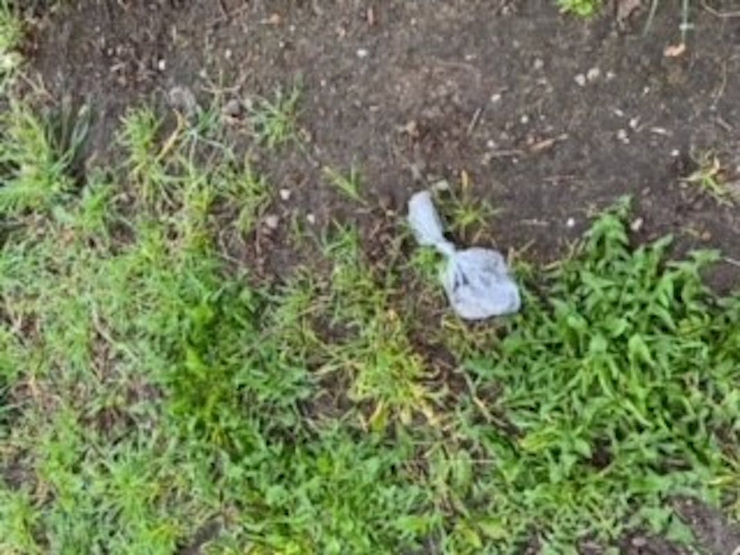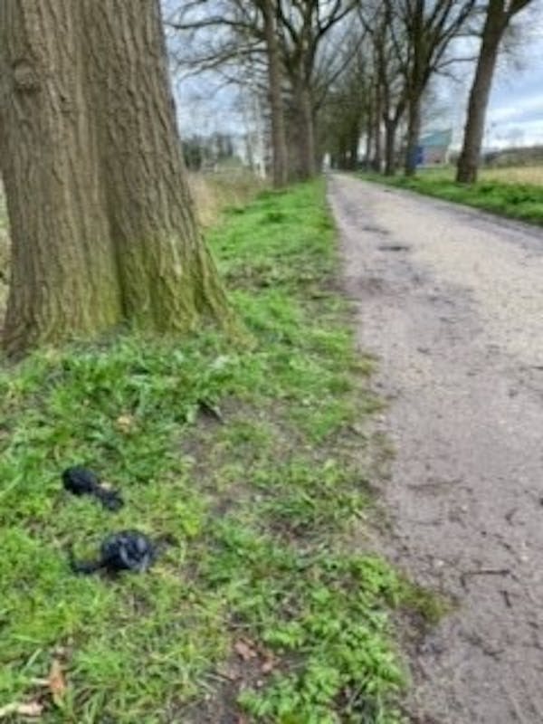 Het is super dat je de uitwerpselen van je huisdier opraapt, maar gooi het thuis in de KLIKO en niet in de natuur. Wees daar ook een held in. Dit is een stukje langs het voetbalveld. Vriendelijk bedankt!!