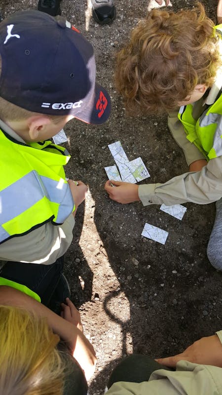 De scouts zijn op de fiets vertrokken. De eindbestemming was onduidelijk maar met het bij elkaar leggen van de kaartjes die ze ontvangen hadden ontstond er een heuse route.