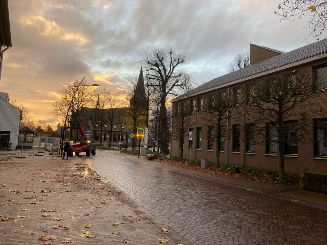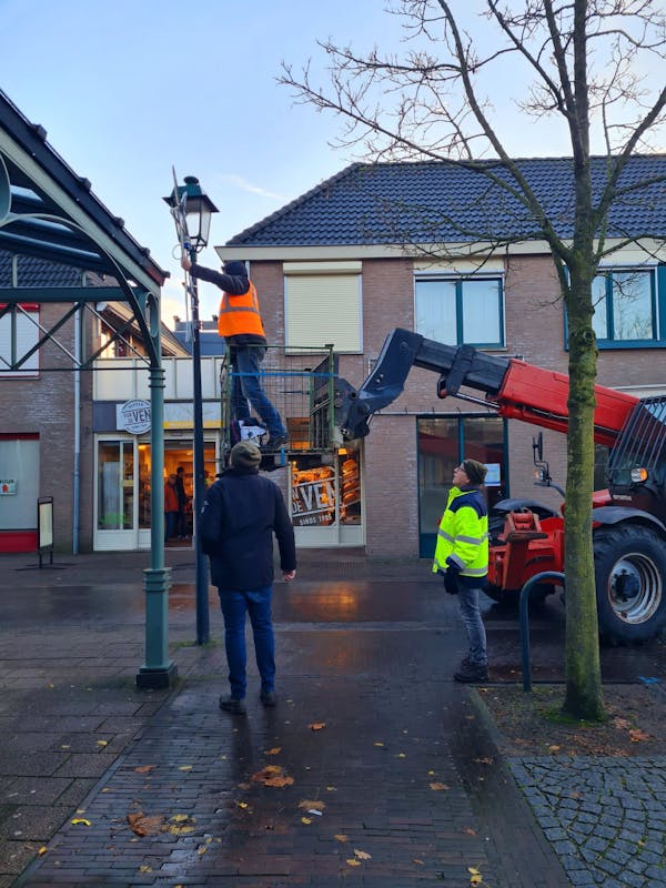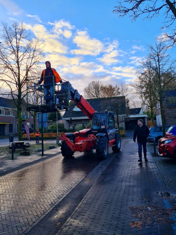 De mannen van de kerstverlichting waren al vroeg op pad vanochtend. Ze hadden er zin in. Met veel plezier en goede samenwerking hebben ze licht gebracht in Sint Anthonis.