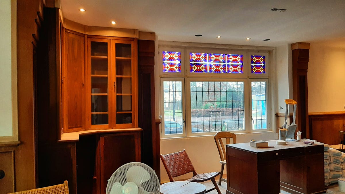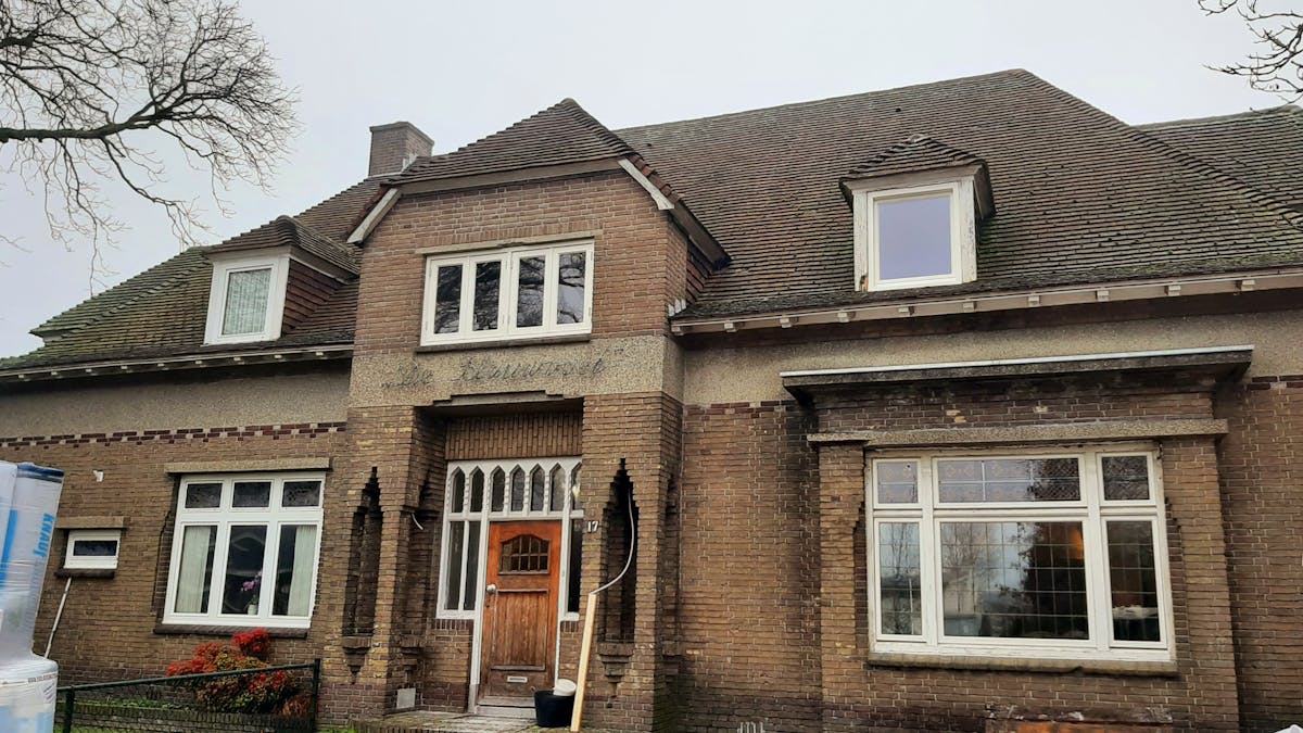 Vrijdag 14 januari bezoeken wij Bram en Loes. Pip, de hond, begroet ons kwispelend. Aan de keukentafel hebben wij een leuk gesprek. We hebben een half jaar achter in de tuin in een tent gewoond, zegt Bram. Het was er zo koud en vochtig, het was gewoon niet leuk meer. Ik ben geen klusser, zegt Bram lachend. We kijken verbaasd om ons heen, want hij is samen met Loes de klusser in huis. Beroep gemist? Het huis is helemaal gestript. De oude aspecten van het huis worden in ere herstelt. In één woord prachtig! Het huis is gebouwd door de toenmalige huisarts: “Dr. Verbeek”. We behouden de originele elementen, zoals de glas in loodramen en de houten lambrisering, vult Bram aan.