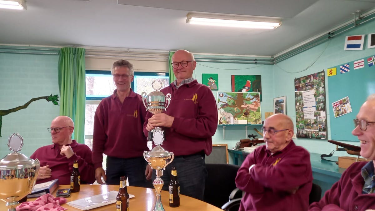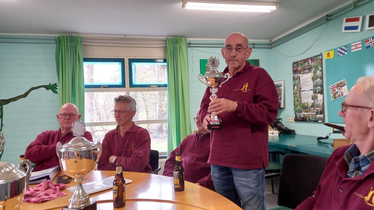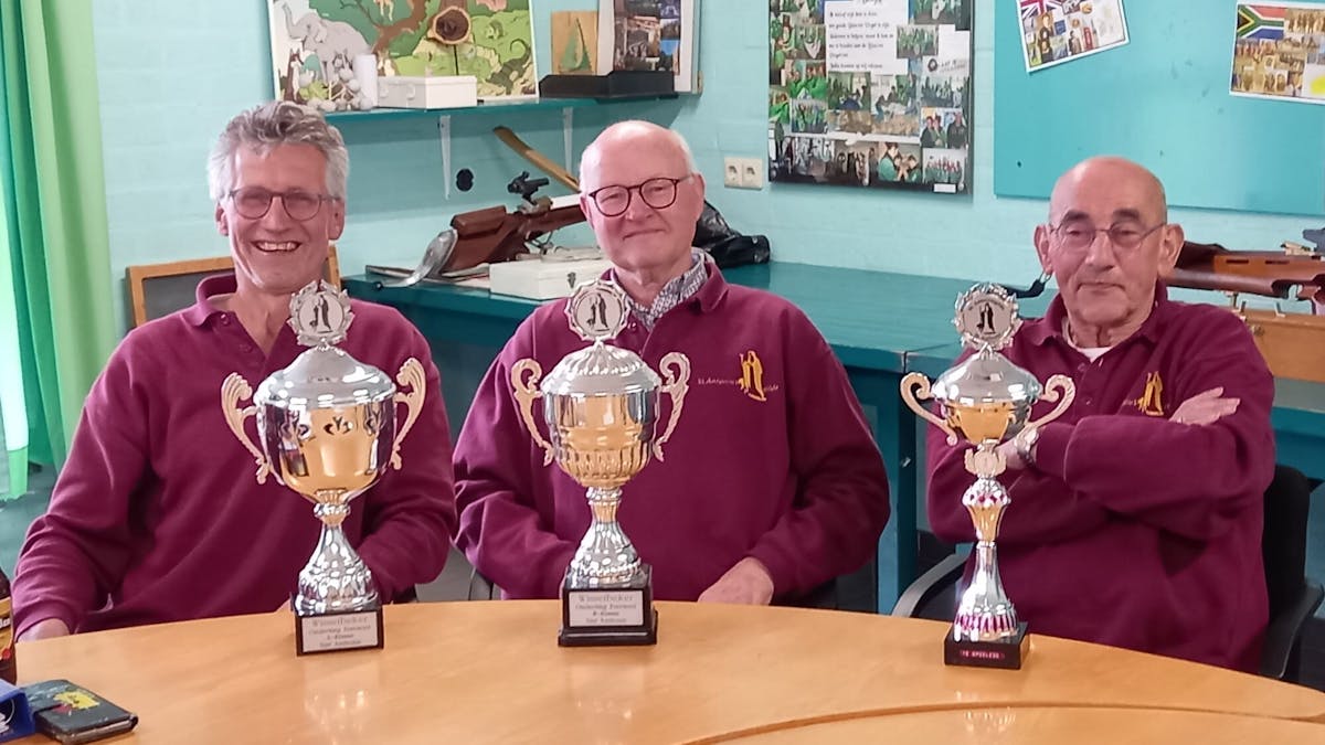 Vorige week zondag schoten onze schutters om de jaarlijkse trofee voor kruisboog vlak. Op bijgaande foto de trotse winnaars (van links naar rechts). A-klasse: Rinie Bloemen, B-klasse: Wiel Peeters. Opgelegd: Louis vd Zanden.