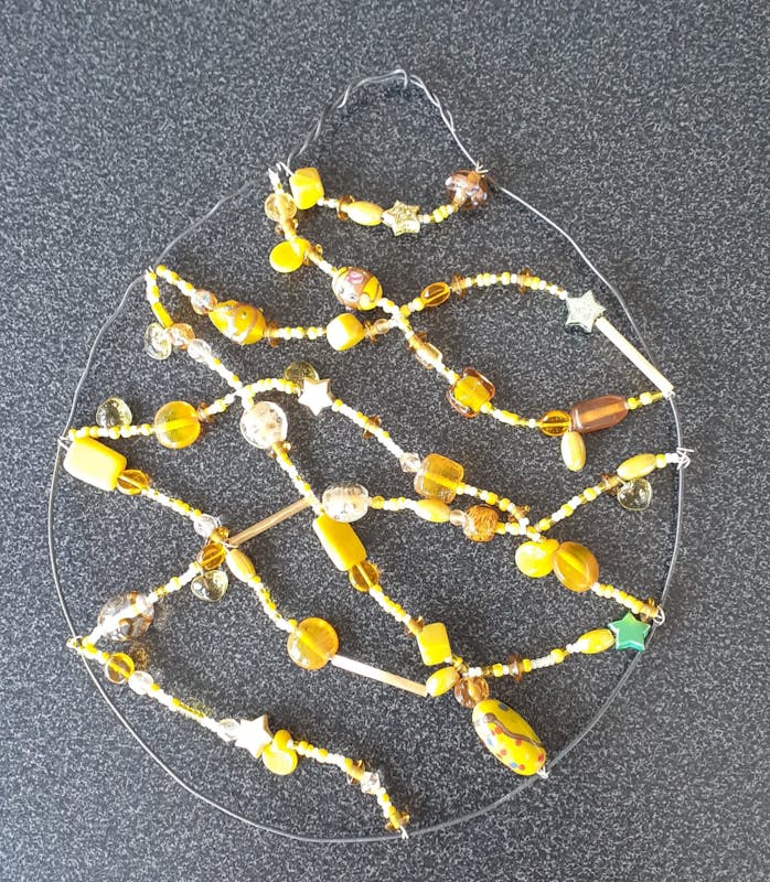 Op maandagavond 9 december van 19.00 tot 21.30 uur geven Francine Verhoeven en Willie Verbeek deze workshop in het Atelier van Oelbroeck. We gaan een grote en een kleine ster, of kerstbal, van ijzerdraad versieren met glazen kralen. Alle materialen zijn aanwezig. Er kunnen maximaal 8 personen deelnemen. Kosten: 15 euro p.p. inclusief een kopje koffie of thee. Aanmelden kan door een berichtje te sturen naar