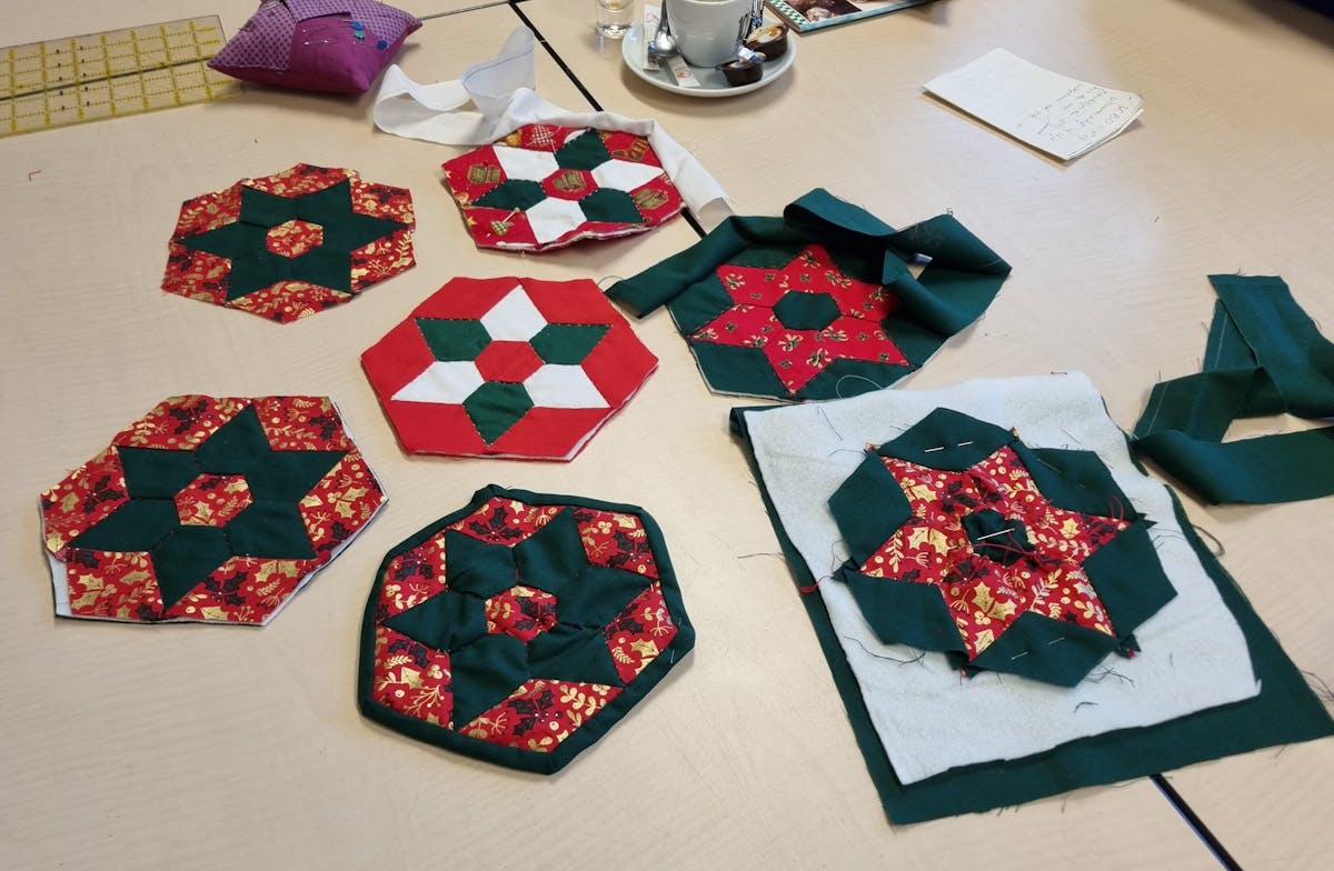 Tijdens de Workshop Quilten heeft een groepje geïnteresseerden onder leiding van Cela Arntz tijdens 2 dagdelen de eerste beginselen van quilten geleerd.