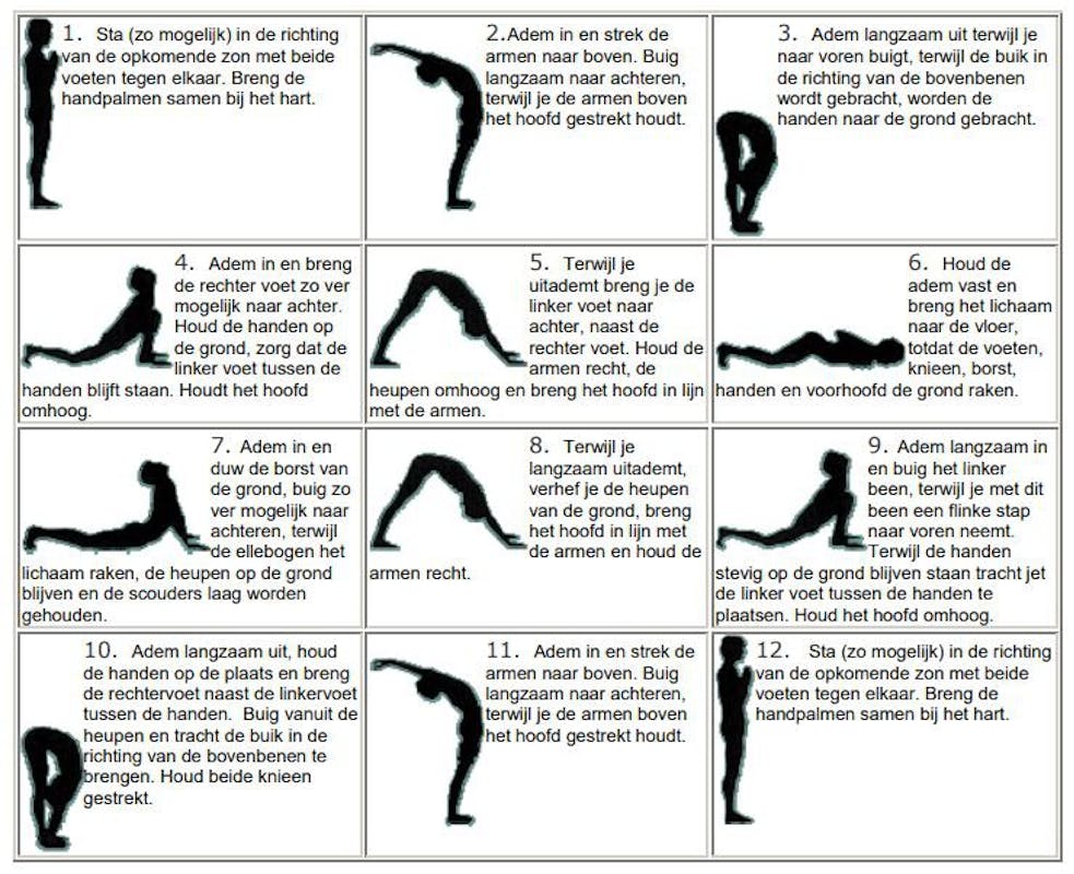 Twee weken geleden heb ik de Egyptische zonnegroet uitgelegd. Vandaag geef ik je 'De Zonnegroet'. Deze oefening is heel erg geschikt om je hele lichaam in beweging te brengen. Het vergt even wat oefening, maar als je hem onder de knie hebt, dan gaat het vast vanzelf.